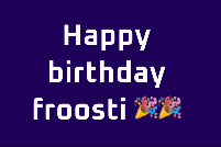 Happy birthday froosti First uploaded: 2025-Oct-19 12:08:46 By: Gregothy :) | |
